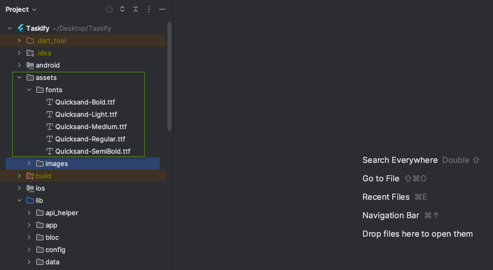 • Go to assets > font , here you have to paste your font. Now go to pubspec.yaml under fonts section change your font name as shown in below image.