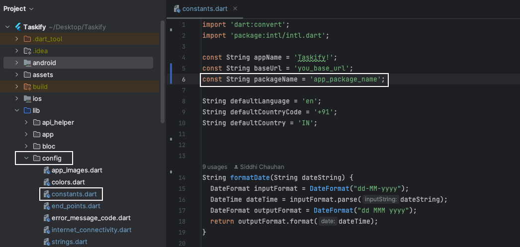 • Go to constants.dart file from helper folder. (lib->config->constant.dart)