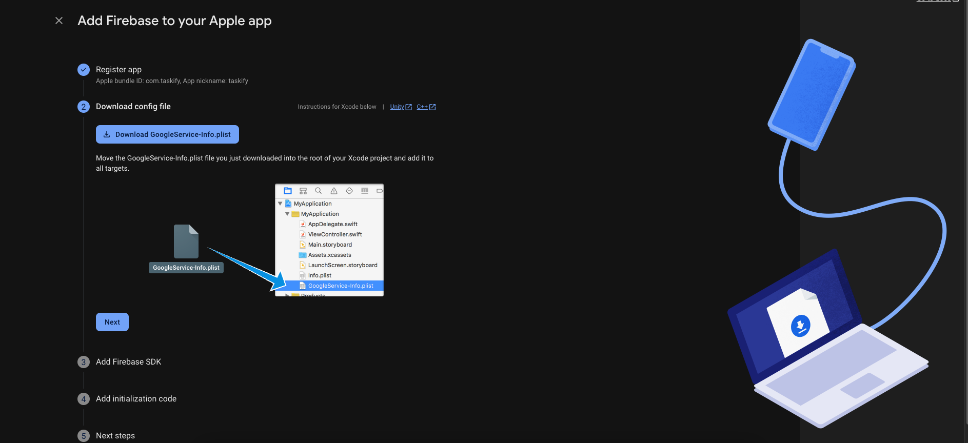 • Move or copy GoogleService-Info.plist into the [my_project]/ios/Runner directory.