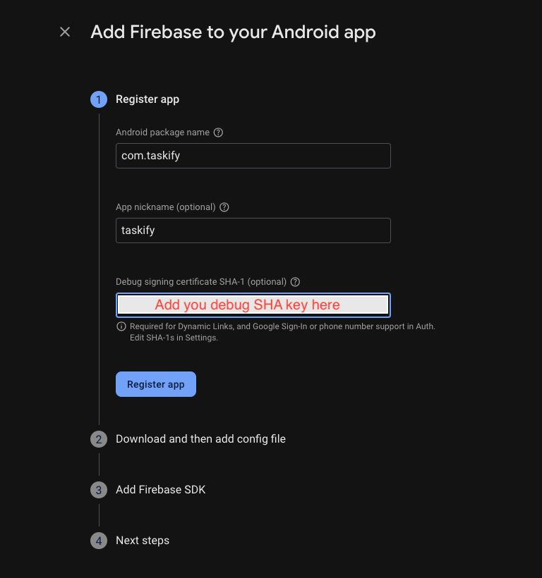 • and then click on ios button.in this same as android step will be here, you have to enter your appname.then next
