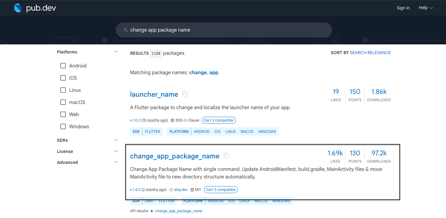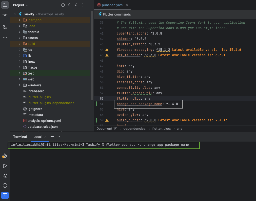 • Run command "flutter pub add -d change_app_package_name" in terminal.