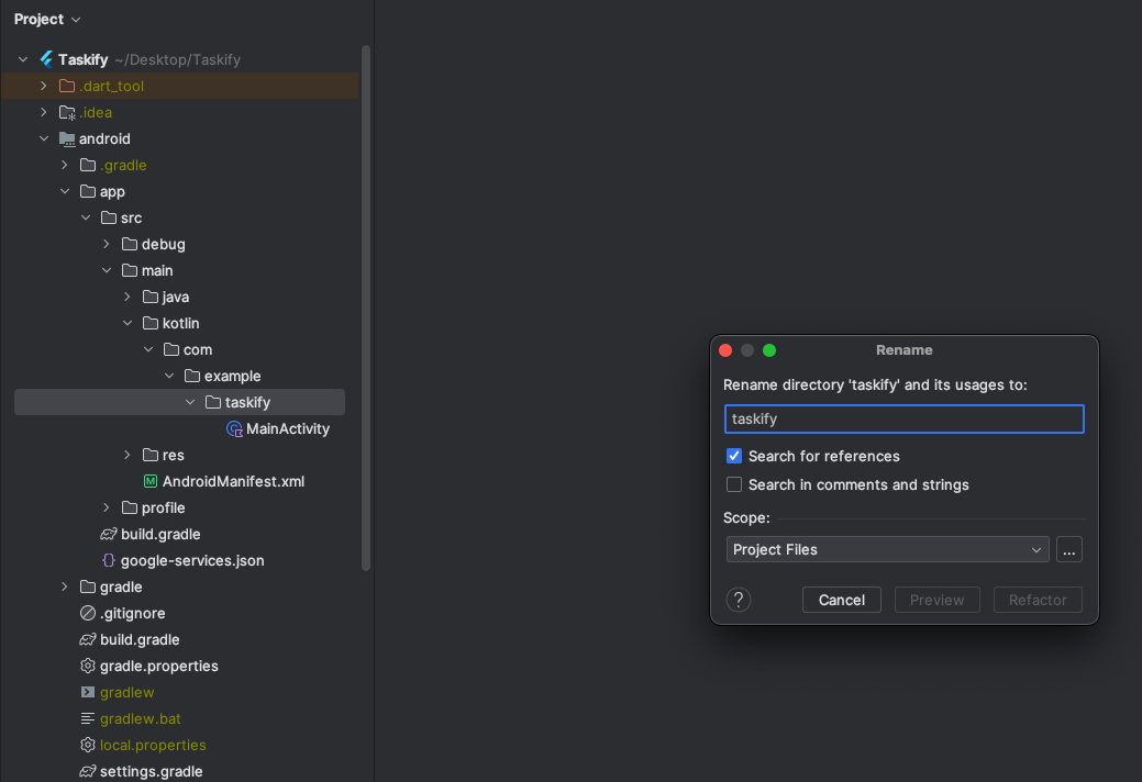 • Now press ctrl + shift + R and replace old packagename with your new packagename.