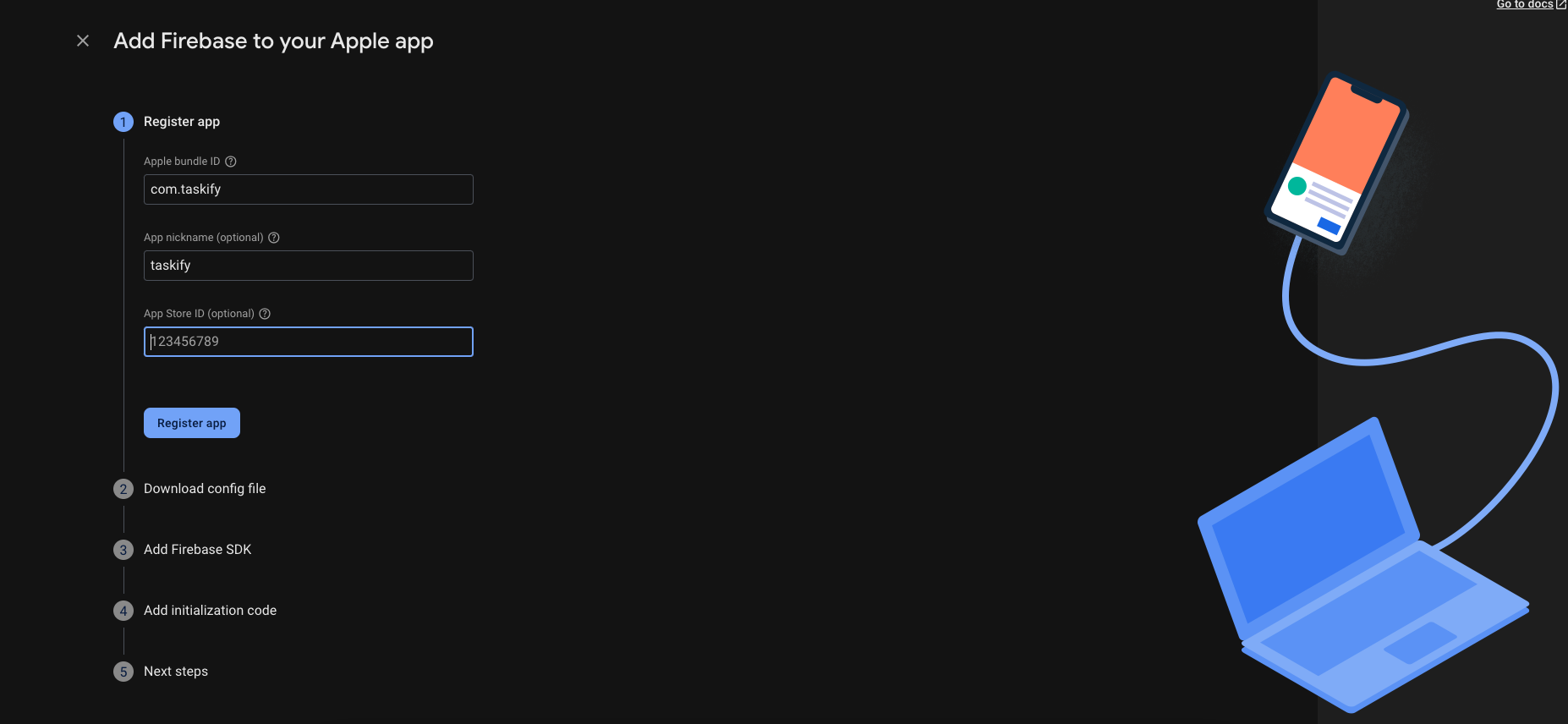 • and then click on ios button.in this same as android step will be here, you have to enter your appname.then next